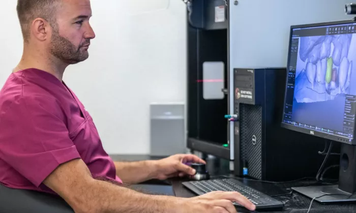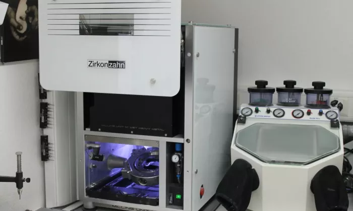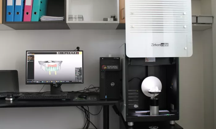 Depuis notre acquisition de la caméra optique, la plupart des empreintes pour le laboratoire sont traitées de manière numérique sur ordinateur, sans empreinte avec un matériel souvent encombrant pour le patient. La réalisation des travaux se fait sur ordinateur (imprimante 3D, machine de frisage etc) offrant des avantages de précision, rapidité et qualité avec les finitions de Monsieur Rocca.